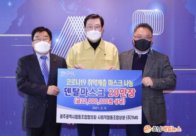 ÀÌ ÀÚ¸®¿¡¼ ±¤ÁÖ½ÃÇùµ¿Á¶ÇÕÇùÀÇȸ´Â Ãë¾à°èÃþÀÇ Äڷγª19 °¨¿° ¿¹¹æÀ» À§ÇØ ¸¶½ºÅ© 10¸¸ÀåÀ» (»ç)±¤ÁÖ±¤¿ª½ÃÀÚ¿øºÀ»ç¼¾ÅÍ¿¡ Àü´ÞÇß´Ù.