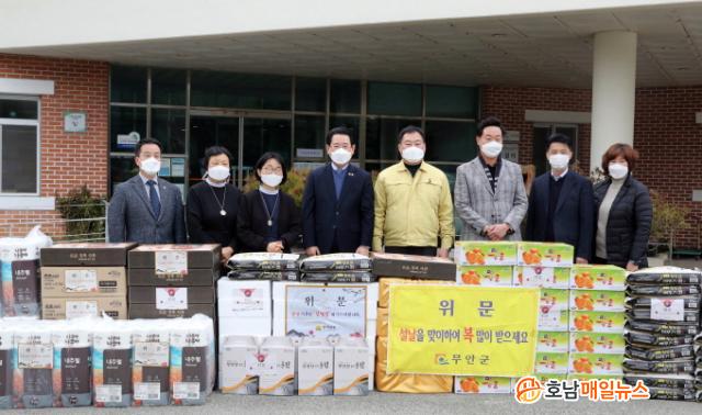 ÇÑÆí, Àü¶ó³²µµ ½Ç±¹Àå ÀÌ»ó °£ºÎ°ø¹«¿ø°ú µµÀÇ¿ø µîµµ ¾î·Á¿î ÀÌ¿ô°ú ½Ã¼³À» ¹æ¹®ÇØ À§¹®Ç°À» Àü´ÞÇÏ´Â µî ÀÌ¿ô»ç¶û ³ª´®¿¡ ¾ÕÀå¼°í ÀÖ´Ù.