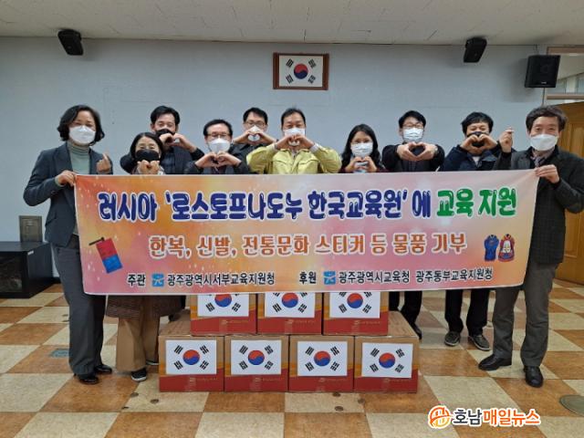 ÇÑÆí, ±¤ÁÖ¼ºÎ±³À°Áö¿øÃ» ¹ÚÁÖÁ¤ ±³À°ÀåÀº ¡°À̹ø Àü´ÞµÉ ¹°Ç°µéÀÌ ·¯½Ã¾Æ ¡®·Î½ºÅäÇÁ³ªµµ´© Çѱ¹±³À°¿ø¡¯ ÇлýµéÀÇ Çѱ¹¿¡ ´ëÇÑ ÀÌÇØ¸¦ ³ôÀÌ´Â µ¥ µµ¿òÀÌ µÇ±æ ¹Ù¶õ´Ù¸ç , ¾ÕÀ¸·Îµµ ¼ºÎ±³À°Áö¿øÃ»Àº Áö¼ÓÀûÀ¸·Î Çѱ¹±³À°¿ø°ú ±³·ùÇØ ·¯½Ã¾Æ-Çѱ¹ ÇлýµéÀÇ ¿ª»ç.¹ÎÁ·ÀÇ½Ä ÇÔ¾ç ±³À°ÀÌ ½ÇÇöµÉ ¼ö ÀÖµµ·Ï ÃÖ¼±À» ´ÙÇϰڴ١±°í ¹àÇû´Ù.