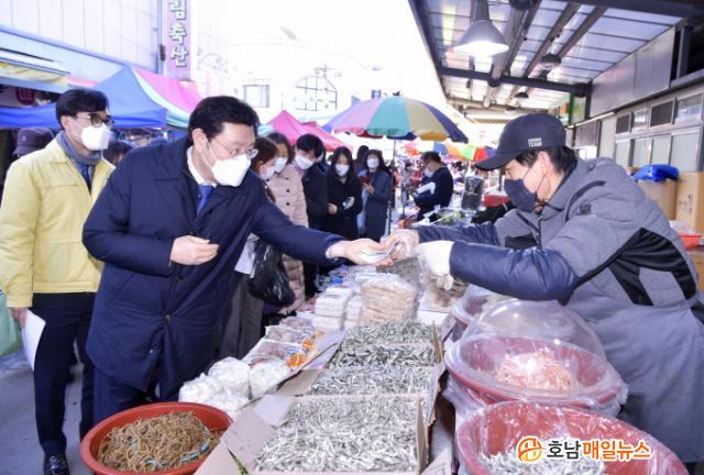 À̿뼷 ½ÃÀåÀº ù Ç༱Áö·Î Äڷγª19·Î À̿밴 °¨¼Ò µî ÇÇÇØ¸¦ °Þ°í ÀÖ´Â ±¤»ê±¸ ¼ÛÁ¤¸ÅÀϽÃÀå°ú ¼ÛÁ¤5ÀϽÃÀåÀ» ã¾Æ ¼³¸ÂÀÌ ÀüÅë½ÃÀå À庸±â¸¦ Àü°³ÇÏ°í »óÀεéÀÇ ¾Ö·Î»çÇ×À» ûÃëÇß´Ù.