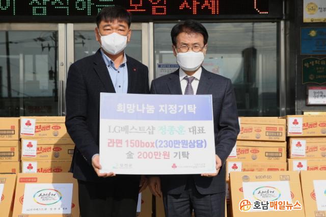Áö³ 5ÀÏ LGÀüÀÚ º£½ºÆ®¼¥ °ÁøÁ¡ Á¤Á¾ÈÆ ´ëÇ¥°¡ °Áø»ç¶û»óǰ±Ç 200¸¸¿ø°ú ¶ó¸é 150¹Ú½º(2¹é¸¸ ¿ø »ó´ç)¸¦ ±âŹÇß´Ù. ¶Ç Àü±¹ÇÑ¿ìÇùȸ °Áø±ºÁöºÎ(ÁöºÎÀå ±è°¹Î)¿¡¼ ÇÑ¿ì ºÒ°í±â¿Í ±¹°Å¸® 84kg(3¹é¸¸ ¿ø »ó´ç)À», MS½ÄÀÚÀ縶Ʈ ÃÖÀçµÎ ´ëÇ¥°¡ ÀÌ¿ôµ½±â¼º±Ý 300¸¸ ¿øÀ» ±âŹÇß´Ù.