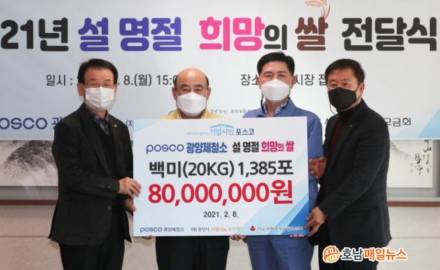 ÇÑÆí, Æ÷½ºÄÚ ±¤¾çÁ¦Ã¶¼Ò´Â 2009³â Ãß¼® ¸íÀýÀ» ½ÃÀÛÀ¸·Î 24ȸ° ¸íÀý ¡®Èñ¸ÁÀÇ ½Ò¡¯ ³ª´® »ç¾÷À» °è¼ÓÇϰí ÀÖÀ¸¸ç, Áö±Ý±îÁö ÃÑ 12¾ï 6õ 5¹é¸¸ ¿øÀÇ »ç¾÷ºñ·Î ±¤¾ç¿¡¼ »ý»êµÇ´Â ¹é¹Ì(20kg) 28,240Æ÷´ë¸¦ ±¸ÀÔÇØ Áö¿ª ³» »çȸº¹Áö½Ã¼³°ú Àú¼Òµæ Ãë¾à°èÃþ¿¡ Áö¿øÇß´Ù.