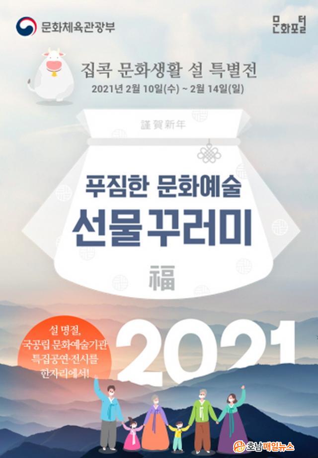 ±¹°ø¸³ ¹®È¿¹¼ú ±â°üÀÌ Á¦°øÇÏ´Â ºñ´ë¸é °ø¿¬¡¤Àü½Ã¡¤Çà»ç µîÀ» Áý¿¡¼ Áñ±æ ¼ö ÀÖ°Ô ÅëÇÕ ¾È³» ´©¸®Áý ¡®ÁýÄÛ ¹®È»ýȰ ¼³ Ưº°Àü(Culture.go.kr/home)¡¯À» °³¼³Çß´Ù.