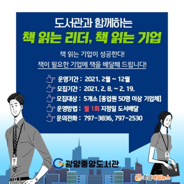 ÇöÀç ±¤¾çÀ¾Àº Áß¾Óµµ¼°ü¿¡¼, Á߸¶µ¿Àº Á߸¶µµ¼°ü¿¡¼ ¿ÃÇØ Ã¥ ¹è´ÞÀ» Èñ¸ÁÇÏ´Â ¼Ò»ó°øÀÎ °¡°Ô¸¦ ¸ðÁý ÁßÀÌ´Ù. ÇÑÆí Áß¾Óµµ¼°üÀº Áö¿ª ³» Á¾¾÷¿ø 50ÀÎ ÀÌ»ó Áß¼Ò±â¾÷À» ´ë»óÀ¸·Î Á÷¿øÀÇ µ¶¼È°µ¿À» Áö¿øÇÏ´Â ¡®Ã¥ Àд ±â¾÷¡¯µµ ÇÔ²² ÃßÁøÇϰí ÀÖ´Ù.