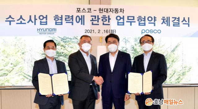Æ÷½ºÄÚ±×·ì°ú Çö´ëÂ÷±×·ìÀº 16ÀÏ Æ÷Ç× Æ÷½ºÄÚ Ã»¼Û´ë¿¡¼ ÃÖÁ¤¿ì Æ÷½ºÄÚ±×·ì ȸÀå, ±èÇе¿ Æ÷½ºÄÚ Ã¶°ºÎ¹®Àå, À¯º´¿Á Æ÷½ºÄÚ »ê¾÷°¡½º¼ö¼Ò»ç¾÷ºÎÀå°ú Á¤ÀǼ± Çö´ëÂ÷±×·ì ȸÀå, °ø¿µ¿î Çö´ëÀÚµ¿Â÷ Àü·«±âȹ´ã´ç »çÀå, ¹ÚÁ¾¼º Çö´ëÁ¦Ã¶ ºÎ»çÀå µîÀÌ Âü¼®ÇÑ °¡¿îµ¥ ¡®¼ö¼Ò »ç¾÷ Çù·Â¿¡ °üÇÑ ¾÷¹«Çù¾à¡¯À» ü°áÇß´Ù.