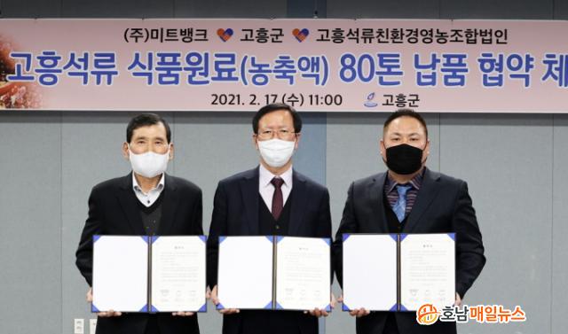 °íÈﱺÀº 17ÀÏ ±ºÃ» ÆÈ¿µ»êȦ¿¡¼ ¼Û±Í±Ù ±º¼ö, ±è¿µÁØ, ¼Õ¿ëÇØ ´ëÇ¥ µî °ü°èÀÚ 20¿© ¸íÀÌ Âü¼®ÇÑ °¡¿îµ¥ °íÈï¼®·ù ½Äǰ¿ø·á 80Åæ ³³Ç° Çù¾àÀ» ü°áÇß´Ù°í ¹àÇû´Ù.