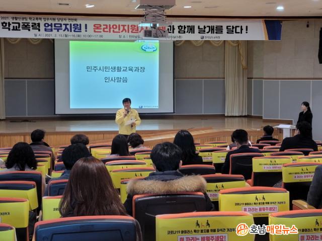 Àü¶ó³²µµ±³À°Ã»Àº 2¿ù 15ÀÏ(¿ù)~16ÀÏ(È) ÀÌÆ² µ¿¾È Àü¶ó³²µµ±³À°¿¬±¸Á¤º¸¿ø ÇÕµ¿°Àǽǿ¡¼ ±³À°Áö¿øÃ» Çб³Æø·Â ¾÷¹«´ã´çÀÚ 90¿© ¸íÀÌ Âü¼®ÇÑ °¡¿îµ¥ ¿¬Âùȸ¸¦ °®°í¡®Çб³Æø·Â»ç¾Èó¸® ¿Â¶óÀÎÁö¿ø½Ã½ºÅÛ¡¯¿î¿µ°èȹÀ» ¹àÇû´Ù.