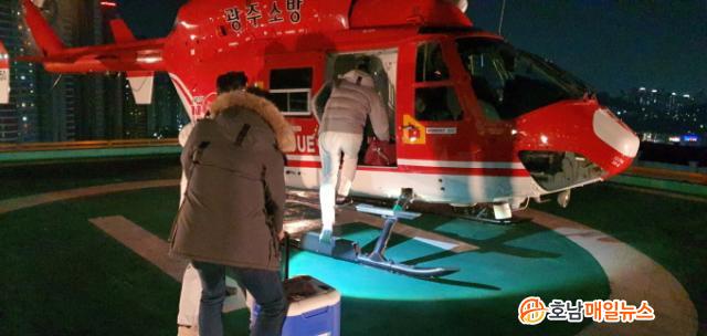 ±¤ÁÖ¼Ò¹æÇï±â´Â ÀûÃâ¼ö¼úÀÌ ÁøÇàµÇ´Â Á¶¼±´ëº´¿ø¿¡¼ ´ë±â ÈÄ ¿ÀÈÄ 7½Ã34ºÐ ÀÌ·úÇØ 1½Ã°£14ºÐ°£ÀÇ ¾ß°£(½Ã°è)ºñÇàÀ» ¸¶Ä¡°í ¿ÀÈÄ 8½Ã48ºÐ¿¡ ±âÁõ ½ÉÀåÀ» ¼¿ï »ï¼ºº´¿ø ÀÌ½ÄÆÀ¿¡ ¹«»çÈ÷ Àü´ÞÇß´Ù.