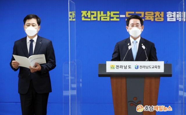À̳¯ Àü³²µµÃ» ºê¸®Çη뿡¼ °¡Áø °øµ¿¹ßÇ¥¿¡¼ ±è¿µ·Ï Àü¶ó³²µµÁö»ç¿Í Àå¼®¿õ Àü¶ó³²µµ±³À°°¨Àº ½ÅÇб⠵¸¦ ¾ÕµÎ°í Äڷγª19 À§±â·ÎºÎÅÍ µµ¹Î°ú ÇлýÀÌ ¾È½ÉÇÒ ¼ö ÀÖ´Â ±³À°È¯°æÀ» ¸¸µé±â À§ÇØ °øµ¿ ³ë·ÂŰ·Î ´ÙÁüÇß´Ù.