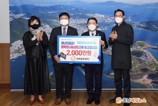 ÇÑȼַç¼Ç(ÁÖ) ¾ÈÀμö Àü¹«´Â Áö³ 24ÀÏ ¿©¼ö½ÃûÀ» ã¾Æ ÀÓÁ÷¿øµéÀÌ Àç³Áö¿ø±Ý ¼ö·É¾× Áß ÀϺθ¦ ¸ð±ÝÇØ ¸¶·ÃÇÑ 2õ¸¸ ¿øÀÇ ±âºÎÁõ¼¸¦ ¡®ÇູÇÑ ³ª´®³ÃÀå°í¡¯ »ç¾÷À» À§ÇØ ½á´Þ¶ó¸ç ±Ç¿ÀºÀ ¿©¼ö½ÃÀå¿¡°Ô Àü´ÞÇß´Ù.