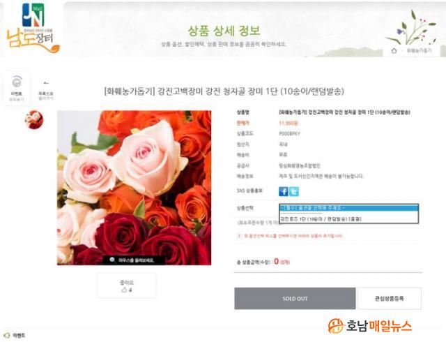 ÇÏÁö¸¸ Àü¶ó³²µµ ¿Â¶óÀμîÇθô ¡®³²µµÀåÅÍ¡¯¿Í °Áø±º ¿Â¶óÀμîÇθô ¡®ÃʷϹÏÀ½¡¯, ¿ìÁ¤Ã» ¼îÇθôÀÎ ¡®¿ìü±¹¼îÇΡ¯¿¡¼ µ¿½Ã ÆÇ¸ÅµÈ Àå¹Ì 3¸¸ 5õ ¼ÛÀÌ ¸ðµÎ Àα⸮¿¡ Á¶±â ǰÀý µÆ´Ù.