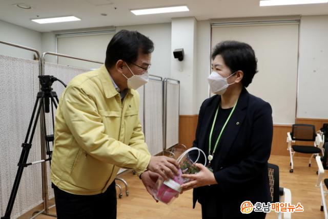 ¾È ´ëÇ¥´Â ¡°Ä®¶ûÄÚ¿¡ ²É¸»Àº ¡®¼³·½¡¯À̰í, °Ü¿ïö °ÇÁ¶ÇÑ ½Ç³»¸¦ Á¤ÈÇÏ¸é¼ ¿À·§µ¿¾È ²ÉÀ» º¸¿©ÁÖ´Â ½Ä¹°ÀÌ´Ù¡±¸ç ¡°¿À´Ã Äڷγª19 ¹é½Å Á¢Á¾À» ¹Þ´Â ½Ã¹ÎÀÇ ¼³·½ÀÌ Áö¿ª»çȸ Àüü·Î ÆÛÁ® Äڷγª ûÁ¤Áö¿ªÀ¸·Î °Åµì³ª´Â ºÐÀ§±â¸¦ ¸¸µé¸é ÁÁ°Ú´Ù¡±°í ÀüÇß´Ù.
