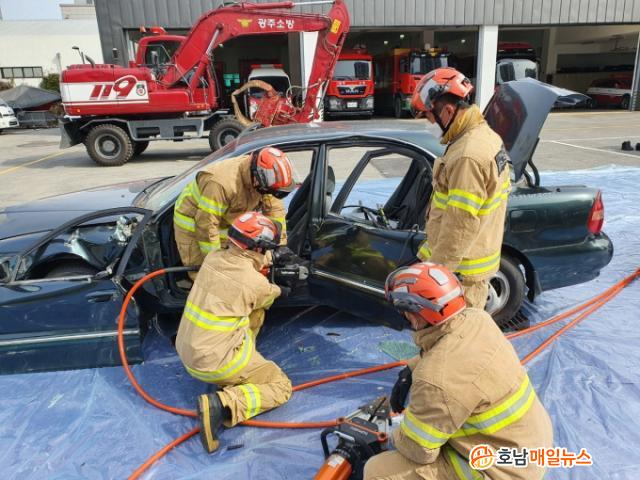 ÇÑÆí, ¼Û¼ºÈÆ 119Ư¼ö±¸Á¶´ÜÀåÀº ¡°±³Åë»ç°í ÇöÀåÀº ¿¹ÃøÇÒ ¼ö ¾ø´Â º¯¼ö°¡ ¸¹±â ¶§¹®¿¡ ´Ù¾çÇÑ »óȲÀ» °¡Á¤ÇÑ ÈÆ·ÃÀÌ ÇÊ¿äÇÏ´Ù¡±¸ç ¡°¾î¶°ÇÑ »óȲ¿¡¼µµ ¾ÈÀüÇÏ°í ½Å¼ÓÇÑ ÀθíÀ» ±¸Á¶ÇÒ ¼ö ÀÖ´Â ÈÆ·ÃÀ¸·Î ±¸Á¶´ë¿øÀÇ ¿ª·®°È¿¡ ´õ¿í ³ë·ÂÇϰڴ١±°í ¸»Çß´Ù.