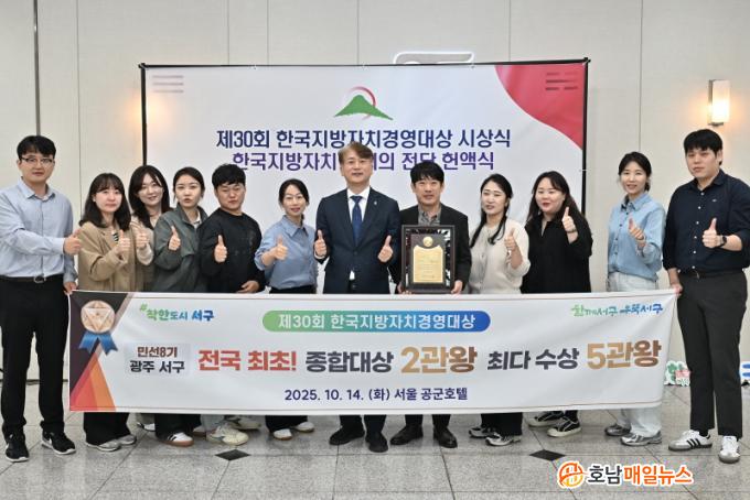 Áö³ 2023³â¿¡ ÀÌ¾î ¿ÃÇØµµ Á¾ÇÕ´ë»óÀ» ¼ö»óÇÔÀ¸·Î½á ¹Î¼±8±â ÃÖÃÊ Á¾ÇÕ´ë»ó 2°ü¿ÕÀÇ ±â·ÏÀ» ¼¼¿üÀ¸¸ç ¡ã2023³â Á¾ÇÕ´ë»ó, ÁÖ¹ÎÀÚÄ¡´ë»ó ¡ã2024³â º¹Áöº¸°Ç´ë»ó, ÀÎÀçÀ°¼º´ë»ó¿¡ ÀÌ¾î ¿ÃÇØ Á¾ÇÕ´ë»ó±îÁö ´õÇØ ¡®ÃÖ´Ù ¼ö»ó 5°ü¿Õ¡¯À» ´Þ¼ºÇß´Ù. ÀÌó·³ ÇÑ Àӱ⠳» ¡®Àü±¹ ÃÖÃÊ¡¯ÀÌÀÚ ¡®ÃÖ´Ù ¼ö»ó¡¯ÀÇ ±â·ÏÀ» ¼¼¿î °ÍÀº Çѱ¹Áö¹æÀÚÄ¡°æ¿µ´ë»ó ¿ª»ç»ó ±¤ÁÖ ¼±¸°¡ À¯ÀÏÇÏ´Ù.