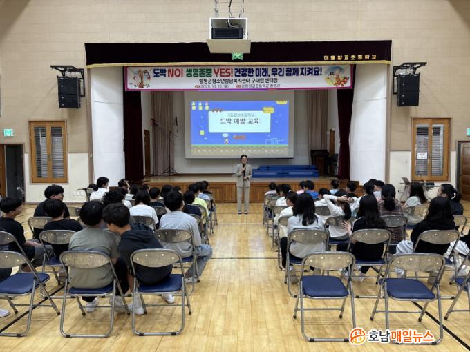 [È£³²¸ÅÀÏ´º½º = ±è¿¬Èñ ±âÀÚ] ÇÔÆò±ºÃ»¼Ò³â»ó´ãº¹Áö¼¾ÅÍ¡¤ÇÔÆò±ºÇб³¹Ûû¼Ò³âÁö¿ø¼¾ÅÍ ±¸Å¸² ¼¾ÅÍÀåÀº Á÷Á¢ °­»ç·Î ³ª¼­ Áö³­ 10¿ù 13ÀÏ ´ëµ¿Çâ±³ÃʵîÇб³ Àü±³»ýÀ» ´ë»óÀ¸·Î ¡®Ã»¼Ò³â µµ¹Ú ¿¹¹æ ¹× »ý¸íÁ¸Áß ±³À°¡¯À» ¼º°øÀûÀ¸·Î ÁøÇàÇß´Ù°í ¹àÇû´Ù.