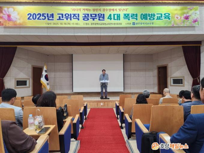 [È£³²¸ÅÀÏ´º½º = ±è¿¬Èñ ±âÀÚ] ±¤Áֽñ³À°Ã»(±³À°°¨ ÀÌÁ¤¼±)Àº 16ÀÏ ±³À°¿¬¼ö¿ø Áß°­´ç¿¡¼­ 5±Þ ÀÌ»ó °ø¹«¿øÀ» ´ë»óÀ¸·Î ¡®4´ë Æø·Â(¼ºÈñ·Õ¡¤¼º¸Å¸Å¡¤¼ºÆø·Â¡¤°¡Á¤Æø·Â) ¿¹¹æ±³À°¡¯À» ½Ç½ÃÇß´Ù.