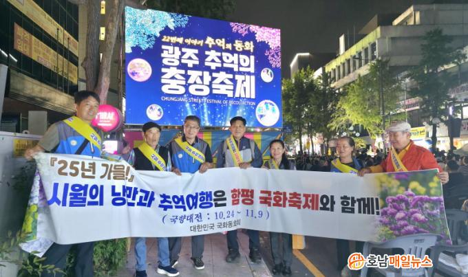 ±¹È­µ¿È£È¸´Â ÃàÁ¦ÀÇ ¼º°øÀûÀÎ °³ÃÖ¿Í °ü±¤°´ À¯Ä¡¸¦ À§ÇØ ¾î±ú¶ì¸¦ Âø¿ëÇϰí Çà»çÀå °÷°÷À» µ¹¸ç ±¹È­ ÀÛǰ Àü½Ã, ȸÀü¸ñ¸¶ Æ÷ÅäÁ¸, ¸íǰºÐÀç°ü µî ÁÖ¿ä ÄÜÅÙÃ÷¸¦ ¼Ò°³Çϸç ÃàÁ¦ÀÇ ¸Å·ÂÀ» ¾Ë·È´Ù.