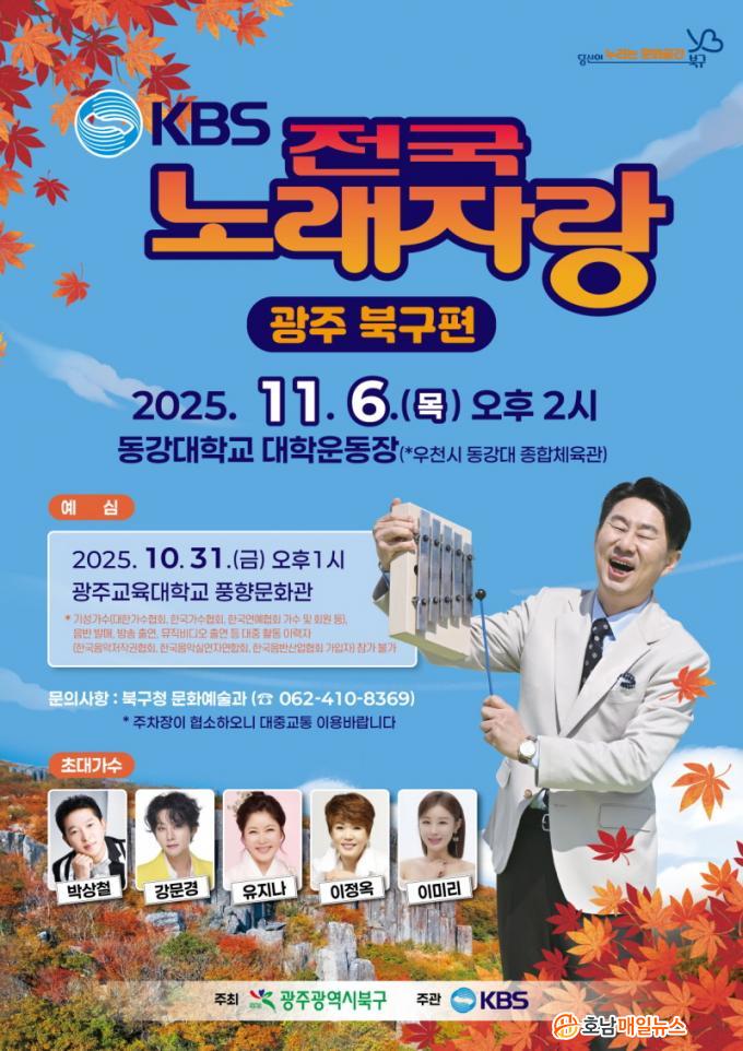 21ÀÏ ºÏ±¸¿¡ µû¸£¸é ¿À´Â 11¿ù 6ÀÏ ¿ÀÈÄ 2½ÃºÎÅÍ ¡®KBS Àü±¹³ë·¡ÀÚ¶û ±¤ÁÖ ºÏ±¸Æí¡¯ º»¼± ³ìȰ¡ µ¿°´ëÇб³ ¿îµ¿Àå¿¡¼ ÁøÇàµÈ´Ù.