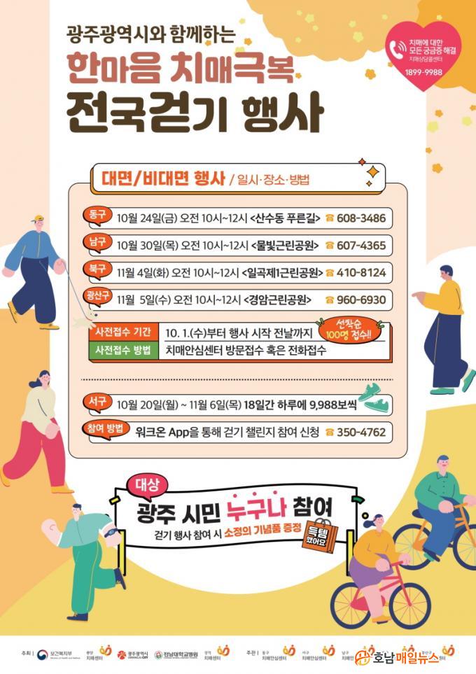 ÀÌ Çà»ç´Â ±¤ÁÖ½Ã¿Í Àü³²´ëÇб³º´¿ø, ±¤ÁÖ±¤¿ªÄ¡¸Å¼¾ÅͰ¡ °øµ¿ÁÖÃÖÇϰí 5°³ ÀÚÄ¡±¸ º¸°Ç¼Ò Ä¡¸Å¾È½É¼¾ÅͰ¡ ÁÖ°üÇÑ´Ù. ÇÁ·Î±×·¥Àº ¡ãÄ¡¸Å¿¹¹æÃ¼Á¶ ¡ã¹Ù¸£°Ô °È±â ¹æ¹ý ¾È³» ¡ã´À¸®°Ô °È±â üÇè µîÀ¸·Î ±¸¼ºµÆÀ¸¸ç, ´Ù¾çÇÑ Ä¡¸Å¿¹¹æ È«º¸È°µ¿µµ ÁøÇàµÈ´Ù. Çà»ç ´çÀÏ °È±â ±¸°£À» ¿ÏÁÖÇÑ Âü°¡ÀÚ¿¡°Ô´Â ¼ÒÁ¤ÀÇ ±â³äǰÀÌ Á¦°øµÈ´Ù.