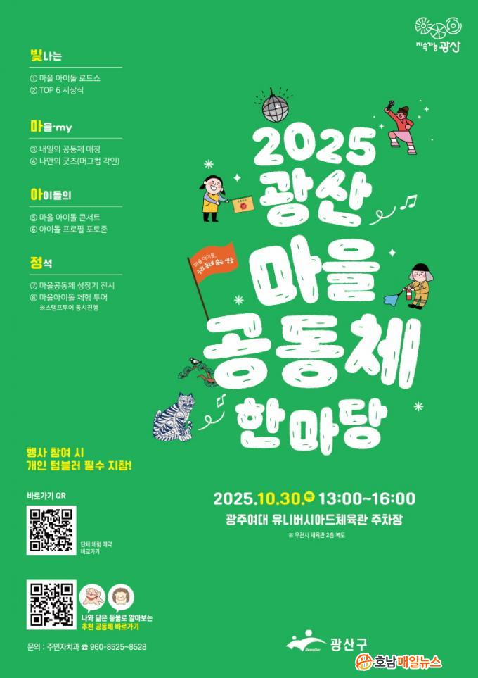 ±¤»ê¸¶À»°øµ¿Ã¼ÇѸ¶´çÀº ¡®¸¶À» ¾ÆÀ̵¹, ¿ì¸® µ¿³× ¼ûÀº ¿µ¿õ¡¯À» ÁÖÁ¦·Î 2025³â ±¤»êÇü ¸¶À»°øµ¿Ã¼ Áö¿ø»ç¾÷ Áֹΰø¸ð»ç¾÷¿¡ ¼±Á¤µÈ ´ÜüµéÀÌ ÀڽŵéÀÇ È°µ¿À» ±æ°Å¸® °ø¿¬, °¢Á¾ üÇè, Àü½Ã µî ´Ù¾çÇÑ ¹æ½ÄÀ¸·Î ¼±º¸ÀÌ´Â Çà»ç´Ù.