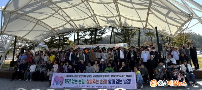 ³ªÁÖ½ÃÁö¿ª»çȸº¸ÀåÇùÀÇü(°øµ¿À§¿øÀå À±º´ÅÂ, ȫö½Ä)´Â Áö³ 24ÀÏ ºû°¡¶÷ È£¼ö°ø¿ø¿¡¼ ¡®ÇÑ °ÉÀ½¾¿, ÇÔ²² ¸¸µå´Â ¼¼»ó¡¯À» ÁÖÁ¦·Î ¡®Á¦8ȸ Àå¾ÖÀΰú ÇÔ²² È£¼ö°ø¿ø °È±â Çà»ç¡¯¸¦ °³ÃÖÇß´Ù°í 27ÀÏ ¹àÇû´Ù.