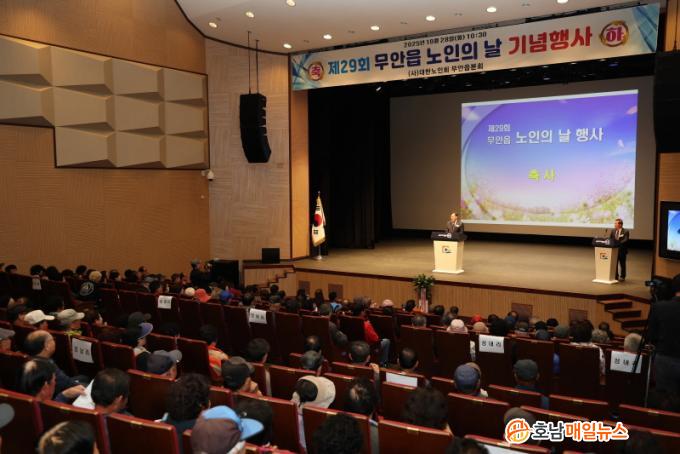 ±è»ê ±º¼ö´Â¡°Á¦29ȸ ¹«¾ÈÀ¾ ³ëÀÎÀÇ ³¯À» Áø½ÉÀ¸·Î ÃàÇϵ帮¸ç, ¿À´ÃÀÇ ¹«¾ÈÀÌ ÀÖ±â±îÁö Çå½Å°ú ³ë·ÂÀ» ¾Æ³¢Áö ¾ÊÀ¸½Å ¾î¸£½Åµé²² ±íÀº Á¸°æ°ú °¨»çµå¸°´Ù¡±¸ç, ¡°¾ÕÀ¸·Îµµ ¾î¸£½ÅµéÀÌ ´õ¿í ÇູÇϰí Ȱ±âÂù ³ëÈĸ¦ º¸³¾ ¼ö ÀÖµµ·Ï ¡®¹«¾ÈÀ» ´õ Å©°Ô, ¾î¸£½ÅµéÀÇ »îÀ» ´õ ³ô°Ô¡¯ ¸¸µé¾î °¡°Ú´Ù¡±°í ¸»Çß´Ù.