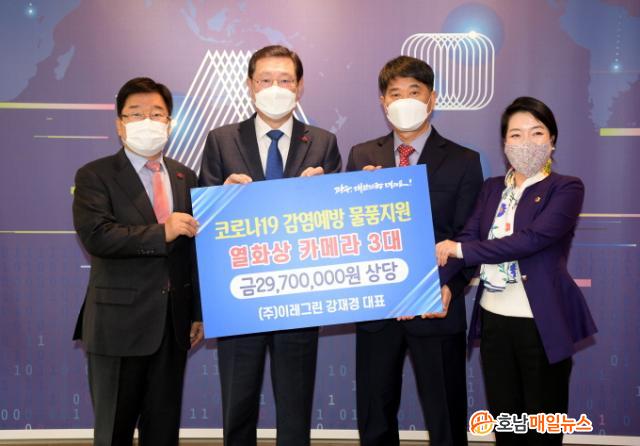 À̳¯ ¢ßÀÌ·¹±×¸°Àº Äڷγª19 °¨¿°¿¹¹æÀ» À§ÇØ ¿È»óÄ«¸Þ¶ó 3´ë¸¦ ±âºÎÇßÀ¸¸ç, ±¤Áֽô ±âºÎ¹ÞÀº ¿È»óÄ«¸Þ¶ó¸¦ °ø°ø±â°ü ¹× ´ÙÁßÀÌ¿ë½Ã¼³¿¡ Ȱ¿ëÇÒ ¼ö ÀÖµµ·Ï (»ç)±¤ÁÖ½ÃÀÚ¿øºÀ»ç¼¾ÅÍ¿¡ Àü´ÞÇß´Ù.