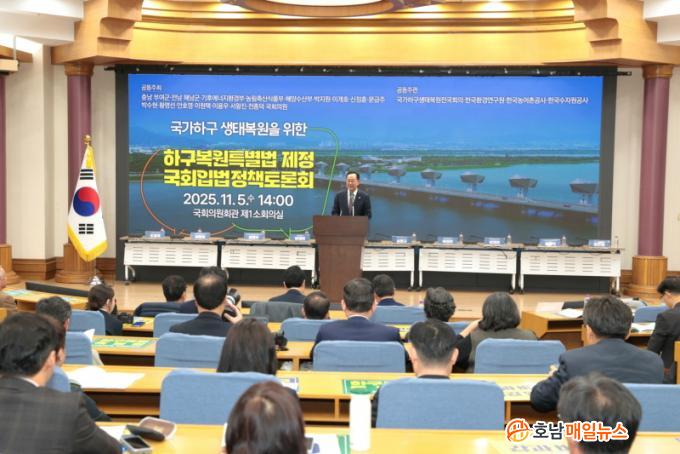 Âü¼®ÀÚµéÀº ÇÏ±ÂµÏ °Ç¼³ ÀÌÈÄ »ý°Ü³ °°ú ¹Ù´ÙÀÇ ¼øÈ¯ ´ÜÀý·Î ´©ÀûµÈ ¼öÁú¿À¿°°ú »ý¹°´Ù¾ç¼º ÈѼÕ, ¿¬¾È½ÀÁö ȲÆóÈ µî º¹ÇÕ ¹®Á¦¸¦ ÇØ°áÇϱâ À§ÇØ Á¶¼ÓÇÑ Çϱ¸º¹¿øÆ¯º°¹ý Á¦Á¤°ú ¾ÈÁ¤Àû Àç¿ø È®º¸, ÀÌÇØ°ü°èÀÚ Âü¿©¿¡ ±â¹ÝÇÑ °Å¹ö³Í½º ±¸ÃàÀÌ ÇÊ¿äÇÏ´Ù´Â µ¥ ÀǰßÀ» ¸ð¾Ò´Ù.