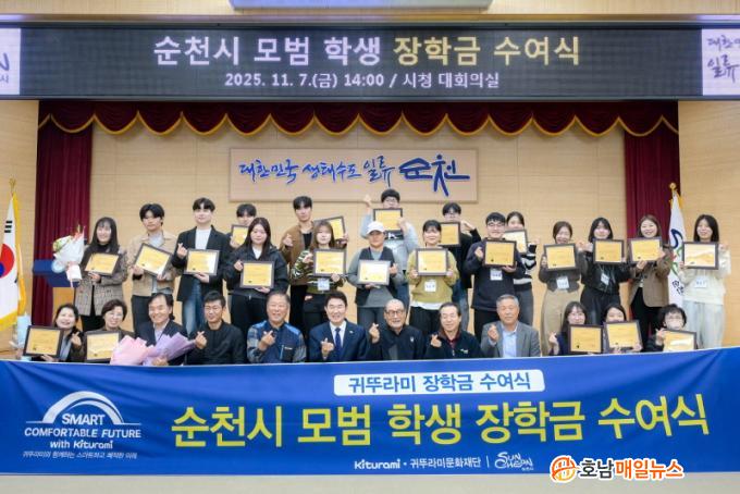 ÀåÇÐ±Ý ¼ö¿©½Ä¿¡´Â ÀåÇлý ¹× Çкθð µî 70¿© ¸íÀÌ Âü¼®ÇßÀ¸¸ç, ½Ã´Â Áö¿ª ³» ±¹¸³¼øÃµ´ëÇб³, û¾Ï´ëÇб³, ¼øÃµÁ¦ÀÏ´ëÇб³ 3°³ ´ëÇп¡¼ Ãßõ¹ÞÀº Çлý 25¸í¿¡°Ô °¢ 2¹é¸¸¿ø¾¿, ÃÑ 5õ¸¸¿øÀÇ ÀåÇбݰú ÀåÇÐÁõ¼¸¦ Àü´ÞÇß´Ù.