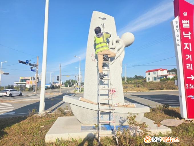 ½Å¾È±ºÀº 2017³â Àü¶ó³²µµ ¡®³²µµÀ½½Ä°Å¸® Á¶¼º °ø¸ð »ç¾÷¡¯¿¡ ¼±Á¤µÇ¾î, 2019³â ¾ÐÇØÀ¾ ¼Û°øÇ× ÀÏ¿ø¿¡ ¾È³» Ç¥ÁöÆÇ°ú ³«Áö¸¦ »ó¡ÇÏ´Â Á¶Çü¹°À» ¼³Ä¡ÇÏ´Â µî °ü±¤ ¸í¼Ò Á¶¼º¿¡ Èû½á¿Ô´Ù.