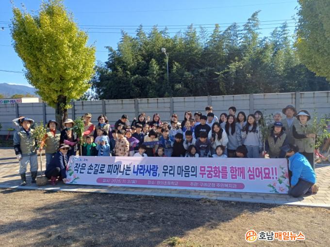 ÇÁ·Î±×·¥¿¡´Â Çлý, Çкθð, ÀÚ¿øºÀ»çÀÚ µî 60¿© ¸íÀÌ Âü¿©Çß´Ù. ù³¯¿¡´Â ÇлýµéÀÌ Çб³ ´ãÀå ÁÖº¯¿¡ ¹«±Ãȸ¦ Á÷Á¢ ½É°í, ÀÚ½ÅÀÌ ¾´ ¼Õ±Û¾¾ Ç©¸»À» ¹«±ÃÈ ¾Õ¿¡ ¼³Ä¡Çϸç Àǹ̸¦ ´õÇß´Ù.