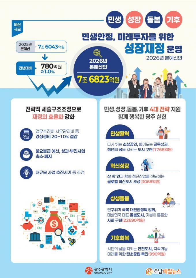 2026³âµµ ¿¹»ê¾ÈÀº ¡®¹Î»ý‧¼ºÀ塤µ¹º½‧±âÈÄ4´ë Àü·«, ÇÔ²² ÇູÇÑ ±¤ÁÖ¡¯¸¦ ½ÇÇöÇϱâ À§ÇÑ ¹æÇâÀ¸·Î Æí¼ºÇß´Ù. ±¤Áֽô ƯÈ÷ ¡ã¹Î»ýȰ·Â : ¼¹Î°æÁ¦ ¾ÈÁ¤°ú °ñ¸ñ»ó±Ç Àçµµ¾à Áö¿ø ¡ãÇõ½Å¼ºÀå : ¹Ì·¡»ê¾÷ ¼±µµ¿Í ±Û·Î¹ú Çõ½Åµµ½Ã µµ¾à ¡ã»ó»ýµ¹º½ : Àα¸À§±â ´ëÀÀ°ú Àü »ý¾ÖÁֱ⠺¹Áö ½ÇÇö ¡ã±âÈÄȸº¹ : 2045 ź¼ÒÁ߸³°ú ¾ÈÀüÇÑ µµ½Ã ±¸Çö µî 4´ë Àü·«¿¡ ÁßÁ¡ÀûÀ¸·Î ÅõÀÚÇÑ´Ù.