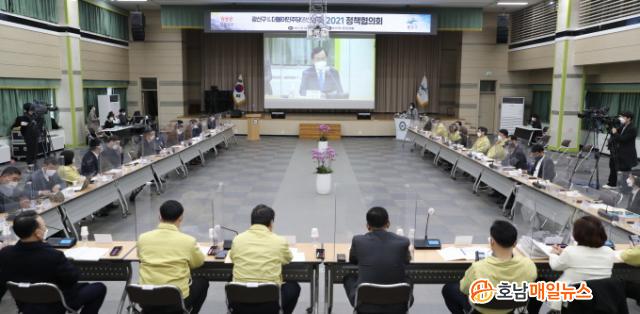 ¹ÎÇü¹è ±¤»êÀ» Áö¿ªÀ§¿øÀåÀº ¡°¡®ÀÚÄ¡ºÐ±Ç Á¤Ã¥ÇùÀÇȸ¡¯´Â ±¤»ê±¸¿Í ´õºÒ¾î¹ÎÁÖ´çÀÇ ³ë·ÂÀÌ ½Ã¹Î »î¿¡ ÀÌ·Î¿î °á°ú¸¦ ¸¸µå´Â ÁÁÀº Çù·Âⱸ´Ù"¸é¼ "ÃÖ±Ù À̽´°¡ µÈ »êÁ¤Áö±¸ ÅÃÁö°³¹ß ¶ÇÇÑ ½Ã¹ÎµéÀÇ ÀǰßÀ» ÃæºÐÈ÷ ¹Ý¿µÇØ °ú°Å Áö±¸´ÜÀ§ °³¹ßÀÇ ÇѰè¿Í ºÒÆíÀ» ¾ø¾Ö´Âµ¥ ÇÔ²² ÁöÇý¿Í ÈûÀ» ¸ðÀ¸ÀÚ"°í ¸»Çß´Ù.