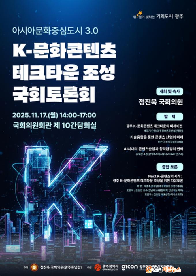 °±âÁ¤ ±¤ÁÖ½ÃÀåÀº ¡°À̹ø ±¹È¸ Åä·Ðȸ¸¦ °è±â·Î K-¹®ÈÄÜÅÙÃ÷ Å×ũŸ¿î Á¶¼º»ç¾÷ÀÌ Á¤ºÎÀÇ Àû±ØÀûÀÎ Áö¿øÀ» ¹Þ°í ¼º°øÀûÀ¸·Î ÃßÁøµÇ±æ ¹Ù¶õ´Ù¡±¸ç ¡°K-¹®ÈÄÜÅÙÃ÷ Å×ũŸ¿îÀº ±¤ÁÖ¸¦ ³Ñ¾î ´ëÇѹα¹ ÄÜÅÙÃ÷»ê¾÷ ±ÕÇü¹ßÀüÀÇ ÇÙ½É Ç÷§ÆûÀ¸·Î ÀÚ¸®¸Å±èÇÒ ¼ö ÀÖÀ» °ÍÀ¸·Î ±â´ëµÈ´Ù¡±°í °Á¶Çß´Ù.