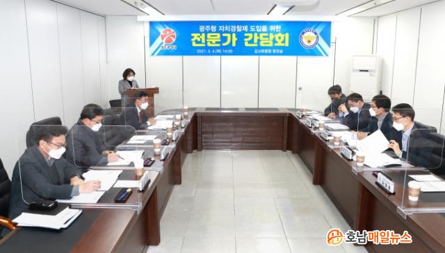 À̳¯ °£´ãȸ¿¡´Â ÀÌÈ«ÀÏ ±¤ÁÖ½ÃÀÇȸ ÇàÁ¤ÀÚÄ¡À§¿øÀå, ±â¿ì½Ä Âü¿©ÀÚÄ¡21 »ç¹«Ã³Àå, ¿ÀÁÖ¼· ±¤ÁÖ°æ½Ç·Ã »ç¹«Ã³Àå, Á¶¸¸Çü µ¿½Å´ë °æÂûÇàÁ¤Çаú ±³¼ö, ÀÌÈÆ Á¶¼±´ë °æÂûÇàÁ¤Çаú ±³¼ö, ±èö¿ø ±¤ÁÖMBC ±âÀÚ µî Áö¿ª»çȸ ºÐ¾ßº° Àü¹®°¡µéÀÌ Âü¼®ÇØ ÀÚÄ¡°æÂûÁ¦ µµÀÔ ¹× ÀÚÄ¡°æÂûÀ§¿øÈ¸ ±¸¼º¹æ¾È¿¡ ´ëÇÑ ´Ù¾çÇÑ ÀǰßÀ» ³ª´³´Ù.