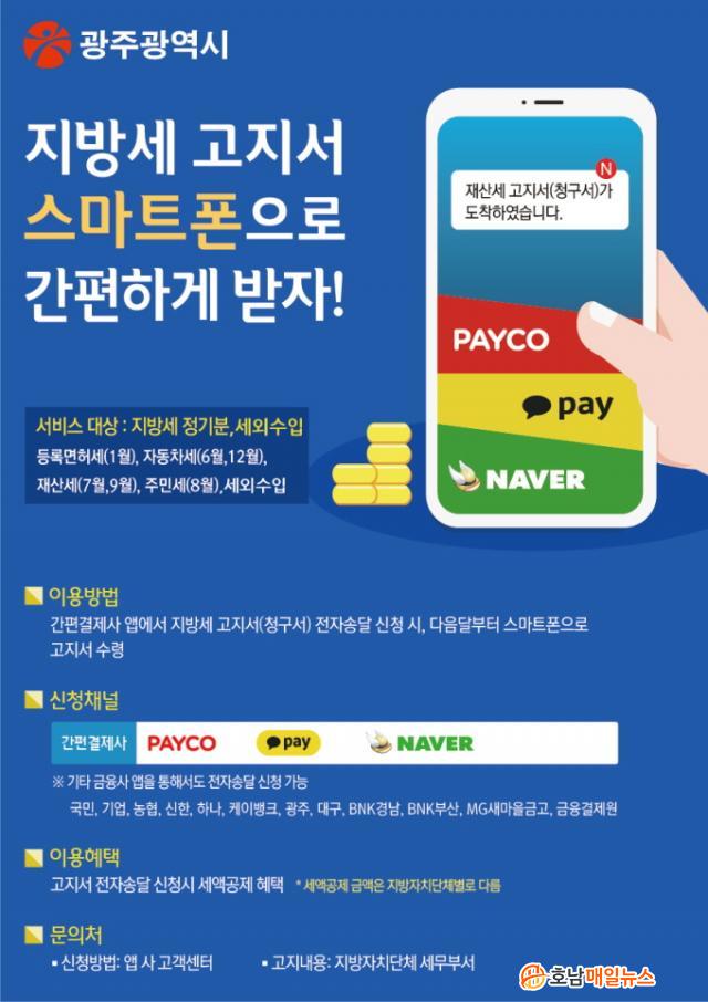 ÀüÀÚ¼Û´Þ Á¦µµ´Â °ú¼¼°üûÀÌ º¸Åë °íÁöÇÏ´Â Áö¹æ¼¼(Áֹμ¼, Àç»ê¼¼, ÀÚµ¿Â÷¼¼, µî·Ï¸éÇã¼¼ µî)¸¦ īī¿ÀÅå, ³×À̹ö, ÆäÀÌÄÚ µî °£Æí°áÁ¦»ç ¾Û°ú ±¤ÁÖÀºÇà, ³óÇù µî 15°³ ±ÝÀ¶»ç ¾Û, ÀüÀÚ»ç¼ÇÔ(À§Åýº), ÀüÀÚ¿ìÆí µîÀ¸·Î Æí¸®ÇÏ°Ô °íÁö¼¸¦ ¼Û´Þ¹Þ°í ³³ºÎÇÒ ¼ö ÀÖ´Â Á¦µµ´Ù.