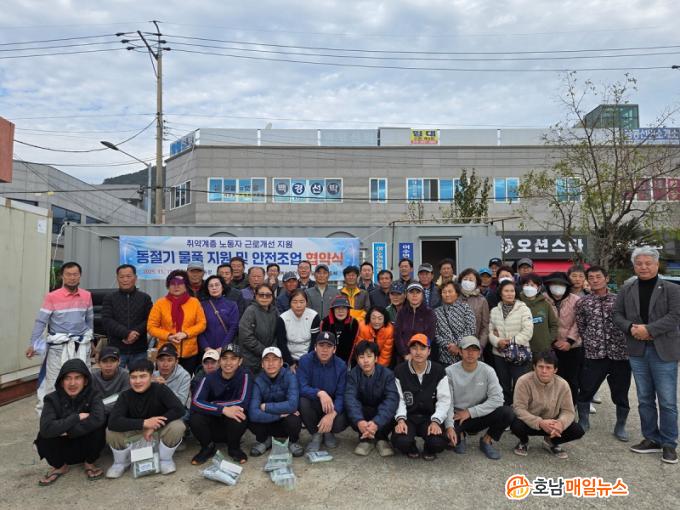 Çù¾à½Ä¿¡´Â ¿©¼ö½Ã ³ë»ç¹ÎÁ¤ÇùÀÇȸ ºÎÀ§¿øÀåÀÎ Çѱ¹³ëÃÑ ¿©¼öÁö¿ªÁöºÎ ±è¼ºÃá ÀÇÀåÀ» ºñ·ÔÇØ Çѱ¹³ëÃÑ¡¤¹ÎÁÖ³ëÃÑ °ü°èÀÚ µîÀÌ Âü¼®ÇßÀ¸¸ç Çù¾à ü°á ÈÄ ¾î¾÷Á¾»çÀÚ 50¿© ¸í¿¡°Ô ¹æÇѺ¹°ú ÇÖÆÑ µî ¹æÇѹ°Ç°ÀÌ Àü´ÞµÆ´Ù.