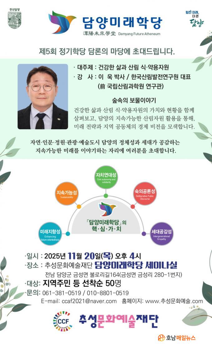 Ãß¼º¹®È¿¹¼úÀç´Ü ³ªÇ×µµ ÀÌ»çÀåÀº À̹ø Çà»ç¸¦ ÅëÇØ ´ã¾çÀÇ Àι®Àû ±íÀÌ¿Í »ýÅÂÀû ¾ÈÁ¤¼ºÀ» µÇ»õ±â°í, ¼¼´ë°¡ °ø°¨ÇÏ´Â ÀÚ¿¬¡¤Àι®¡¤Á¤¿ø¡¤°ü±¤¡¤¿¹¼úµµ½Ã ´ã¾çÀÇ Á¤Ã¼¼º°ú Áö¼Ó°¡´É¼ºÀ» ¸ð»öÇÏ´Â ÀÚ¸®°¡ µÉ °ÍÀ¸·Î ±â´ëÇϰí ÀÖ´Ù. ƯÈ÷, »ê¸² ÀÚ¿øÀÇ º¸¹°ÀÚ¿øÈ¿Í Áö¿ª °øµ¿Ã¼ÀÇ °æÁ¦ ºñÀü âÃâ ¹æ¾ÈÀ» ÇÔ²² ³íÀÇÇÏ¸ç ´ã¾çÀÇ »õ·Î¿î ¹Ì·¡ Àü·«À» Á¦½ÃÇÒ ¿¹Á¤ÀÌ´Ù.
