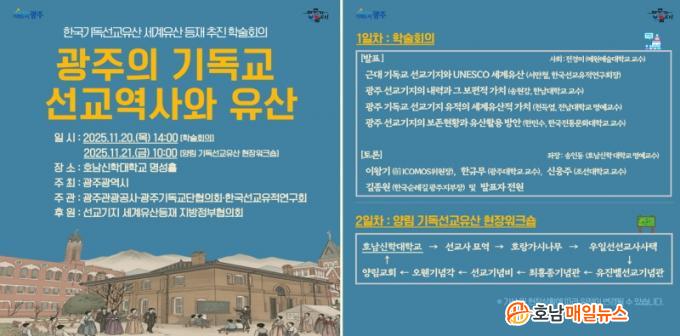 ±¤ÁÖ±¤¿ª½Ã(½ÃÀå °±âÁ¤)´Â 20~21ÀÏ È£³²½ÅÇдëÇб³ ÀÏ¿ø¿¡¼ ¡®Çѱ¹±âµ¶¼±±³À¯»ê ¼¼°èÀ¯»ê µîÀç ÃßÁøÀ» À§ÇÑ ÇмúȸÀÇ¿Í ¿öÅ©¼ó¡¯À» ¿¾î Çѱ¹ ±Ù´ë ±âµ¶±³ ¼±±³ÀÇ ¿ª»çÀû °¡Ä¡¸¦ Á¶¸íÇÑ´Ù.
