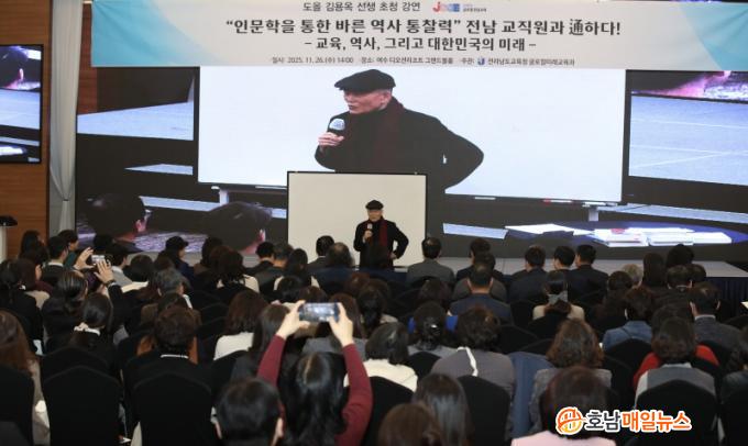 Àü¶ó³²µµ±³À°Ã»ÀÌ 26ÀÏ ¿©¼ö µð¿À¼Ç¸®Á¶Æ®¿¡¼ °³ÃÖÇÑ Àι®ÇÐ °¿¬È¸¿¡¼ µµ¿Ã ±è¿ë¿Á ¼±»ýÀº AI ½Ã´ëÀÇ ±³À°ÀÌ ³ª¾Æ°¡¾ß ÇÒ ¹æÇâÀ» À̰°ÀÌ Á¦½ÃÇß´Ù. ¡®±³À°, ¿ª»ç, ±×¸®°í ´ëÇѹα¹ÀÇ ¹Ì·¡¡¯¸¦ ÁÖÁ¦·Î ÇÑ À̹ø °¿¬¿¡´Â Àü³² ÃÊ¡¤Áß¡¤°í ±³Á÷¿ø°ú Çкθð 500¿© ¸íÀÌ Âü¼®ÇØ °ü½ÉÀ» ¸ð¾Ò´Ù.