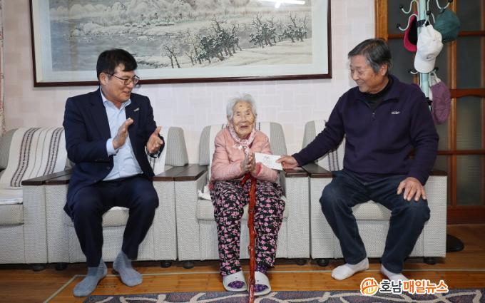ÇÔÆò±ºÀº ÀÌ·¯ÇÑ ÀüÅëÀû Àǹ̸¦ »ì¸®¸é¼µµ 100¼¼°¡ µÈ ¾î¸£½ÅÀÇ °Ç°°ú ÇູÀ» ±â¿øÇϱâ À§ÇØ ¸Å³â °¡Á¤À» ¹æ¹®ÇØ ¾ÈºÎ¸¦ »ìÇÇ°í ´ëÅë·É ¼Çѹ®°ú ÇÔ²² û·ÁÀåÀ» Àü´ÞÇß´Ù.