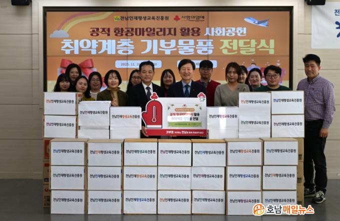 ÀÓÁ÷¿ø °ø¹«ÃâÀå µîÀ¸·Î Àû¸³µÈ °øÀû Ç×°ø¸¶Àϸ®Áö¸¦ ¸ð¾Æ Ç×°ø»ç ¸¶Àϸ®Áö¸ôÀ» ÅëÇØ »ýÇÊǰÀ» ±¸¸ÅÇÑ ÈÄ, ÃÑ 125¸¸ ¿ø »ó´çÀÇ »ýÇÊǰ 50¹Ú½º¸¦ ¹«¾È Àú¼Òµæ ¼¼´ë¿¡ Àü´ÞÇÑ °Í. ±âºÎ¹°Ç°Àº Àü³²»çȸº¹Áö°øµ¿¸ð±Ýȸ¸¦ ÅëÇØ Ãë¾à°èÃþ °¡Á¤¿¡ ¼øÂ÷ÀûÀ¸·Î ¹èºÐµÉ ¿¹Á¤ÀÌ´Ù.