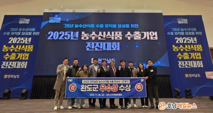 ÇÑÆí, °°Àº ³¯ ¿¸° ¡¸Àü³² ³ó¸²Ãà»ê¹° ¼öÃâž ½Ã»ó½Ä¡¹¿¡¼ ¿Ïµµ±º ¼öÃâ ¾÷üÀÎ ¢ß¹Ù´Ù¸í°¡(500¸¸ ´Þ·¯), ÇØ¹Ì¿ø ¿µ¾îÁ¶ÇÕ¹ýÀÎ(100¸¸ ´Þ·¯), ¢ßǪ¸¥Á¤½Äǰ(50¸¸ ´Þ·¯), ¿Ïµµ¹Ù´Ù ¿µ¾îÁ¶ÇÕ¹ýÀÎ(20¸¸ ´Þ·¯)Àº ¼öÃâžÀ» ¼ö»óÇϸç Áö¿ª ¼ö»ê¹° ¼öÃâ¿¡ ±â¿©ÇÑ °ø·Î¸¦ ÀÎÁ¤¹Þ¾Ò´Ù. (À¯)´ëÇѹ°»ê Á¤´ëÇÑ ´ëÇ¥´Â Àü³² ¼öÃâ À¯°øÀÚ Ç¥Ã¢À» ¹Þ¾Ò´Ù.