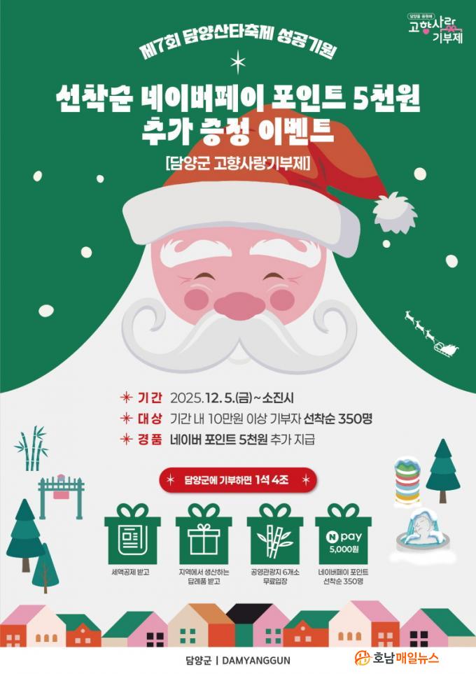À̹ø À̺¥Æ®´Â 10¸¸ ¿ø ÀÌ»ó °íÇâ»ç¶û±âºÎ±ÝÀ» ³½ »ç¶÷ Áß ¼±Âø¼ø 350¸í¿¡°Ô ³×À̹öÆäÀÌ Æ÷ÀÎÆ® 5õ ¿ø±ÇÀ» Ãß°¡ ÁõÁ¤ÇÏ´Â Çà»ç·Î, ´ç÷ÀÚ´Â À̺¥Æ® Á¾·á ÈÄ °³º° ¾È³»ÇÒ ¿¹Á¤ÀÌ´Ù.
