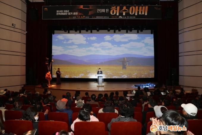 ¡®Àü¼³ÀÌ µÈ Çã¼ö¾Æºñ¡¯´Â °íÈﱺ Àü¼Ó¿¹¼ú´ÜÀÌ ÀÚü ±âȹÇÑ Ã¢ÀÛ °ø¿¬À¸·Î, ¿¹Àε¿ ÃѰý°¨µ¶ÀÌ ±âȹÀ» ¸Ã°í, ½ÉÇöÁ¤ ¹«¿ë´Ü ÁöµµÀÚ°¡ ¾È¹«¸¦ Á¦ÀÛÇßÀ¸¸ç, °íÈﱺ Àü¼Ó¿¹¼ú´Ü¿ø 17¸í°ú °íÈﱺ¹Î 12¸í, ¹Ú¹Ì° µî 6¸íÀÇ ¿¬ÁÖÀÚ¿Í ±èº¸¶÷ ÀÛ°î°¡ µîÀÌ ÇÔ²²ÇØ ¿Ï¼ºµµ ³ôÀº ¹«´ë¸¦ ¼±º¸¿´´Ù.