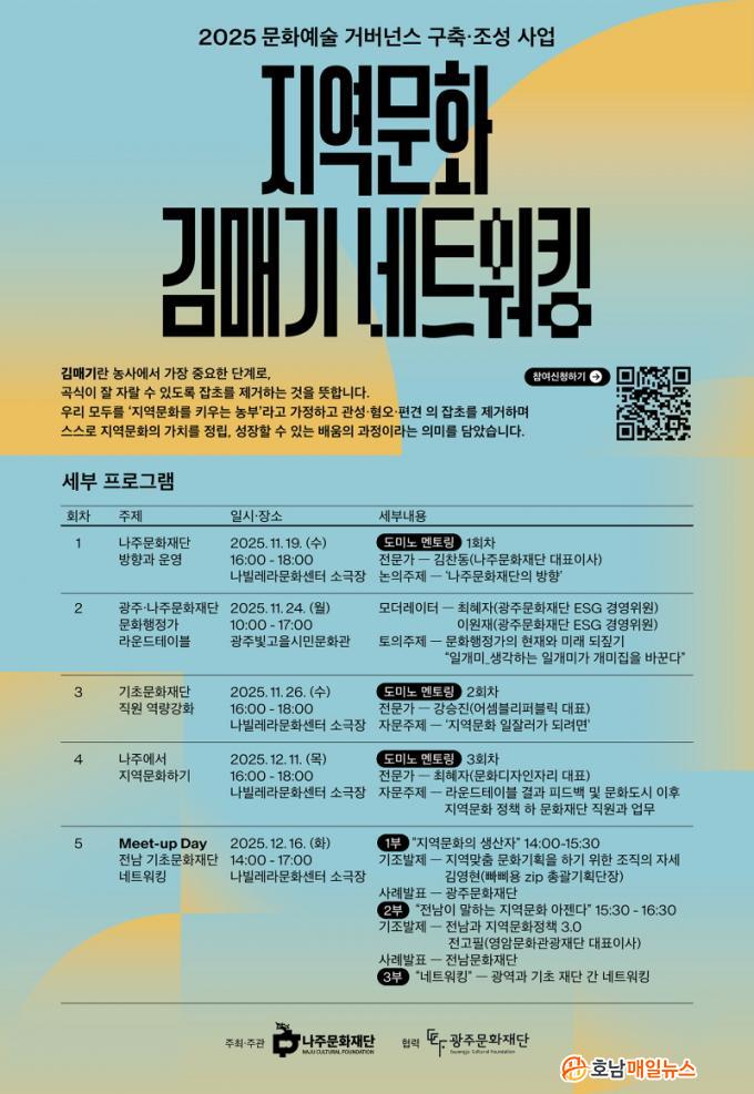 ³ªÁÖ¹®ÈÀç´Ü(ÀÌ»çÀå À±º´ÅÂ)Àº ¿À´Â 12¿ù 16ÀÏ ³ªºô·¹¶ó¹®È¼¾ÅÍ ¼Ò±ØÀå¿¡¼ ¡®Meet-up Day(¹Ô¾÷µ¥ÀÌ)¡¯¸¦ ¿°í Àü³²¡¤±¤ÁÖ±Ç ±¤¿ª¡¤±âÃʹ®ÈÀç´Ü°ú ÇÔ²² Áö¿ª¹®È Çù·Âü°è¸¦ ±¸ÃàÇÑ´Ù°í 11ÀÏ ¹àÇû´Ù.