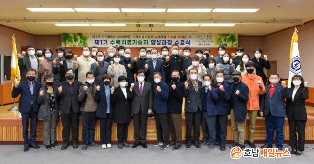 ¼øÃµ´ëÇб³ ±è°æÈñ ³ª¹«ÀÇ»ç ¹× ¼ö¸ñÄ¡·á±â¼úÀÚ ¾ç¼º°úÁ¤±³À°±â°üÀåÀº ¡°³ôÀº °æÀï·üÀ» ¶Õ°í ¼øÃµ´ëÇб³ »êÇÐÇù·Â´Ü ¼ö¸ñÄ¡·á±â¼úÀÚ ¾ç¼º±³À°À» À̼öÇÏ¿© ù ¼ö·á»ýÀÌ ¹èÃâµÇ¾î ¸Å¿ì ¶æ ±í´Ù.¡±¸ç, ¡°±³À°»ýÀÌ ¿ì¸®³ª¶ó ¼ö¸ñ Ä¡·á ¹ßÀü¿¡ À̹ÙÁö ÇÒ ¼ö ÀÖ´Â À̷аú ½Ç¹«¸¦ °âºñÇÑ ¼ö¸ñÄ¡·á±â¼ú·Î Áö¿ª»çȸ¿¡¼ Ȱ¾àÇϱ⸦ ±â´ëÇÑ´Ù¡±¸ç ¼Ò°¨À» ÀüÇß´Ù.