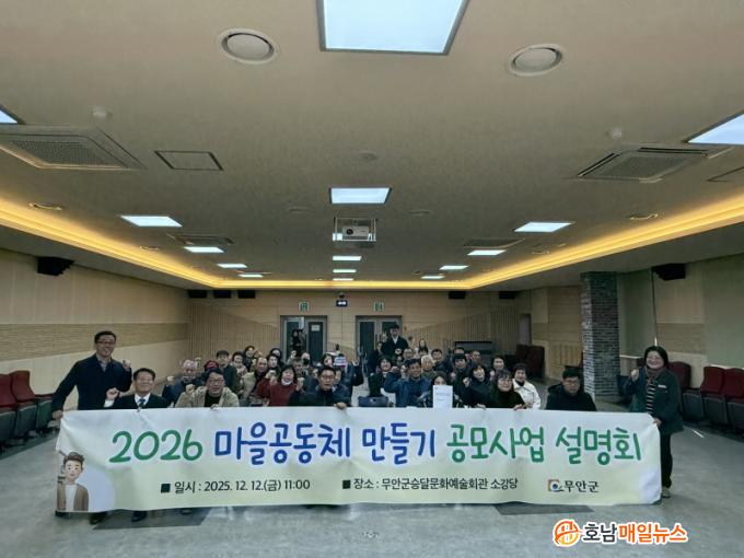 ÇÑÆí, 2026³â ¸¶À»°øµ¿Ã¼ ¸¸µé±â °ø¸ð»ç¾÷Àº 2026³â 1¿ù 7ÀϱîÁö Á¢¼öÇϸç. ±âŸ ÀÚ¼¼ÇÑ »çÇ×Àº ¹«¾È±ºÃ» Áö¿ª°³¹ß°ú Áö¿ª°øµ¿Ã¼ÆÀ(¢Ï 061-450-5763)À¸·Î ¹®ÀÇÇÏ¸é µÈ´Ù.
