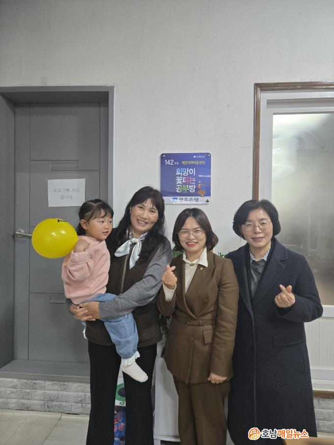 ¹Ú»óÈñ ¼¾ÅÍÀåÀº ¡°±¤ÁÖÀºÇàÀÇ Áö¿øÀ¸·Î ³ëÈÄÈµÈ ½Ã¼³ÀÌ Å©°Ô °³¼±µÅ ¾ÆÀ̵éÀÌ ÇнÀ¿¡ ´õ¿í ÁýÁßÇϰí Á¤¼ÀûÀ¸·Îµµ ¾ÈÁ¤°¨À» ´À³¢°í ÀÖ´Ù¡±¸ç, ¡°¾ÕÀ¸·Îµµ ¾ÆÀ̵éÀÇ °Ç°ÇÑ ¼ºÀåÀ» À§ÇØ °³¼±µÈ ȯ°æÀ» Àß À¯ÁöÇØ ³ª°¡°Ú´Ù¡±°í ÀüÇß´Ù.