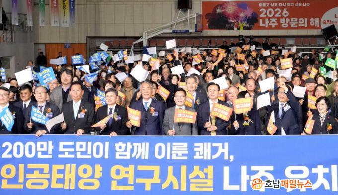 ¡®´ëÇѹα¹ ¿¡³ÊÁö ¼öµµ Àü³² ³ªÁÖ, ÀΰøÅ¾çÀ» ǰ´Ù!¡¯¶ó´Â ½½·Î°Ç ¾Æ·¡ ¿¸° À̳¯ Çà»ç¿¡´Â °À§¿ø Àü³²µµ °æÁ¦ºÎÁö»ç, À±º´Å ³ªÁÖ½ÃÀå, ½ÅÁ¤ÈÆ ±¹È¸ÀÇ¿ø, Áö¿ª ´ëÇС¤»ê¾÷°è¡¤¿¬±¸°è Àλç¿Í À¯Ä¡À§¿øÈ¸ À§¿ø, µµ¹Î µî 900¿© ¸íÀÌ Âü¼®Çß´Ù. À̵éÀº ÀΰøÅÂ¾ç ¿¬±¸½Ã¼³ À¯Ä¡ °¨°ÝÀ» ÇÔ²² ³ª´³´Ù. °¡¼ö ÃàÇϰø¿¬ µîµµ À̾îÁ® Çà»ç ºÐÀ§±â¸¦ ´õ¿í ¶ß°Ì°Ô ´Þ±É´Ù.